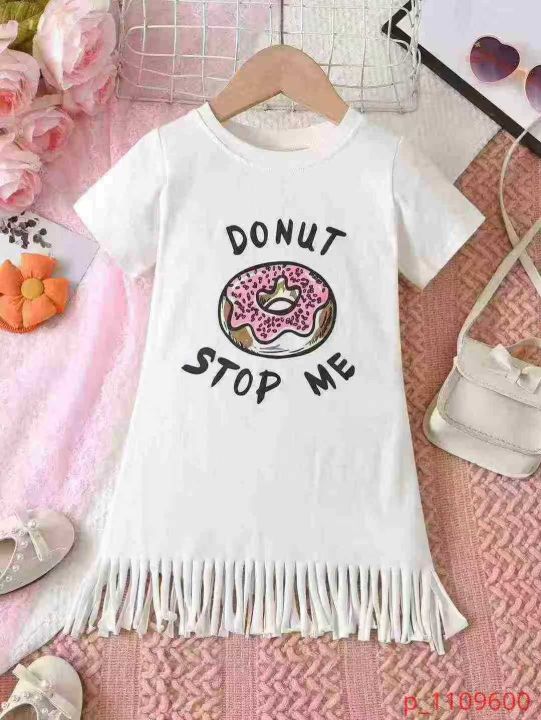 连衣裙夏季新款甜甜圈印花纯棉短袖裙洋气韩版流苏下摆...