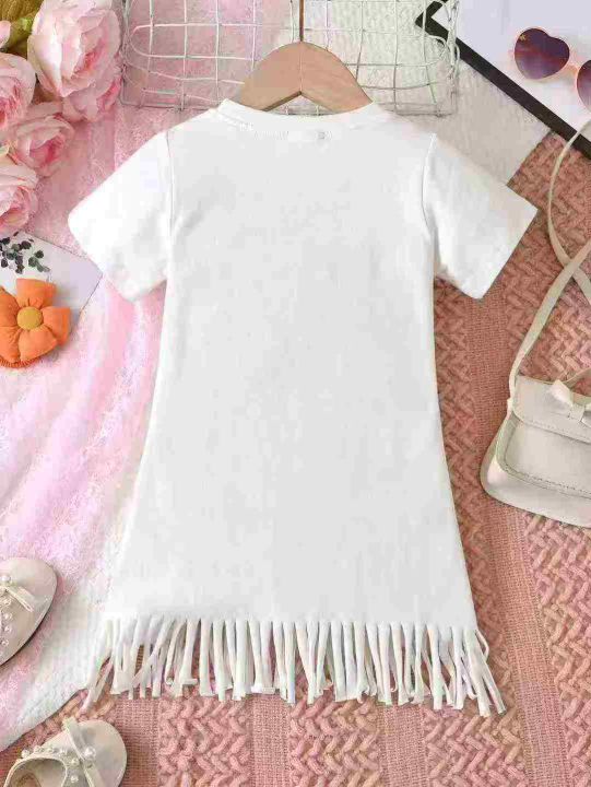连衣裙夏季新款甜甜圈印花纯棉短袖裙洋气韩版流苏下摆...