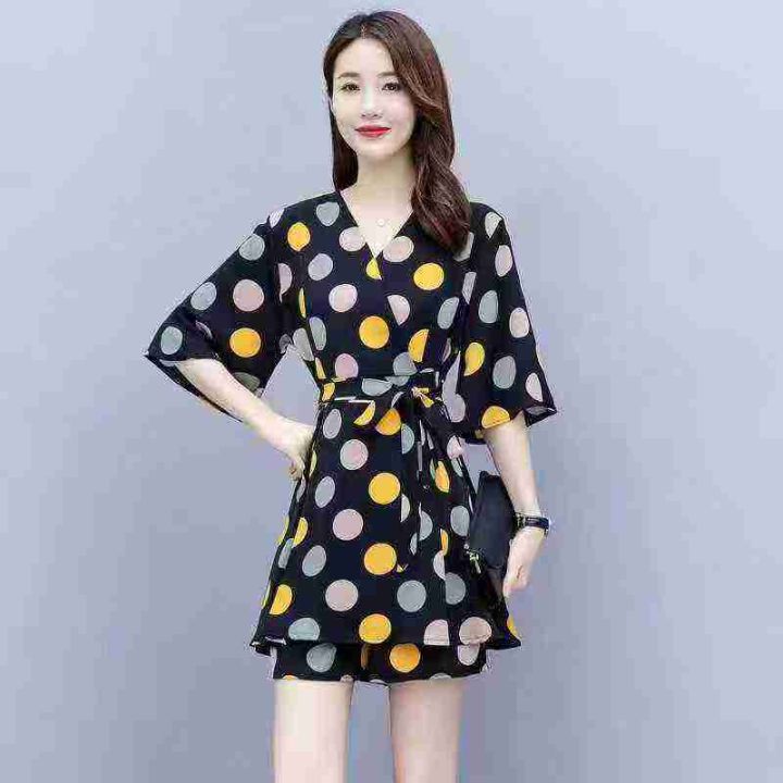[福]连衣裙波点小个子炸街裙子短裤两件套221套,码数M...
