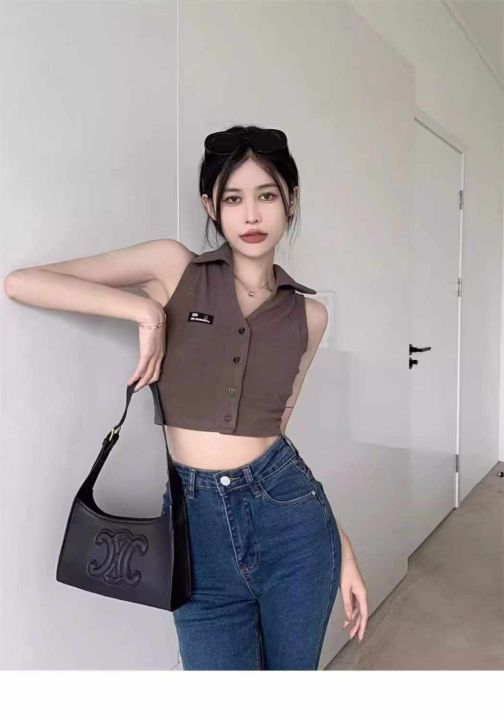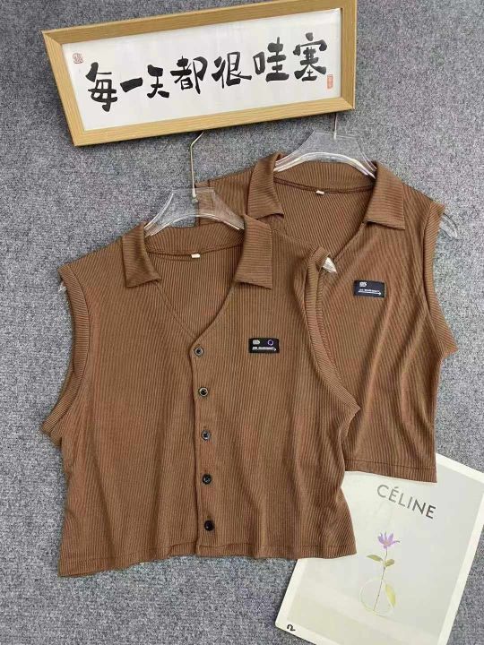 美式复古靓妹背心317件5.9Polo领,胸口小标,两种面料...