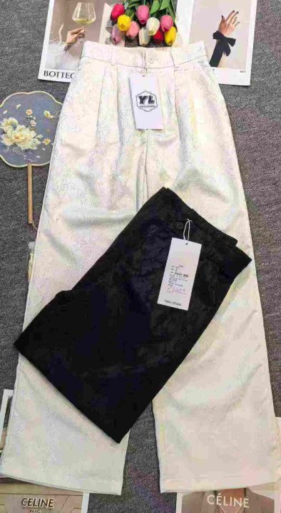 品牌爆款新中式国风高腰显瘦浮雕缎面直筒阔腿裤,腰部包边,常规款适合身高165cm以下,[庆祝]合计2300件左右,尺码XS-2XL,齐码齐色,穿70-145斤,[爱心]万佳档口新货,0️⃣瑕疵,[666]直播实体店爆款,[哇]线下两三百高品质,错过拍大腿,[勾引]分货加一