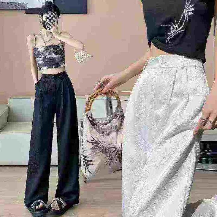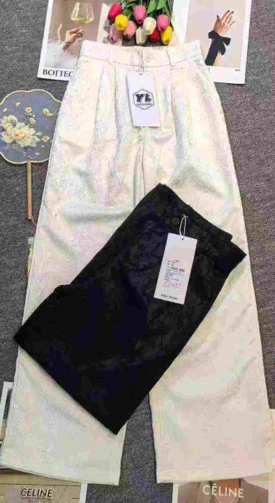 品牌爆款新中式国风高腰显瘦浮雕缎面直筒阔腿裤,腰部包边,常规款适合身高165cm以下,[庆祝]合计2300件左右,尺码XS-2XL,齐码齐色,穿70-145斤,[爱心]万佳档口新货,0️⃣瑕疵,[666]直播实体店爆款,[哇]线下两三百高品质,错过拍大腿,[勾引]分货加一