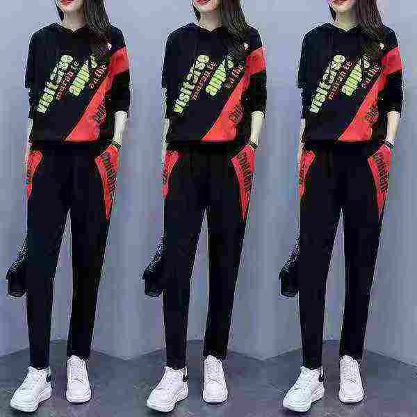 ☕️大码女装洋气减龄字母长袖运动卫衣套装春秋季新款胖mm显瘦遮肉两件套19...