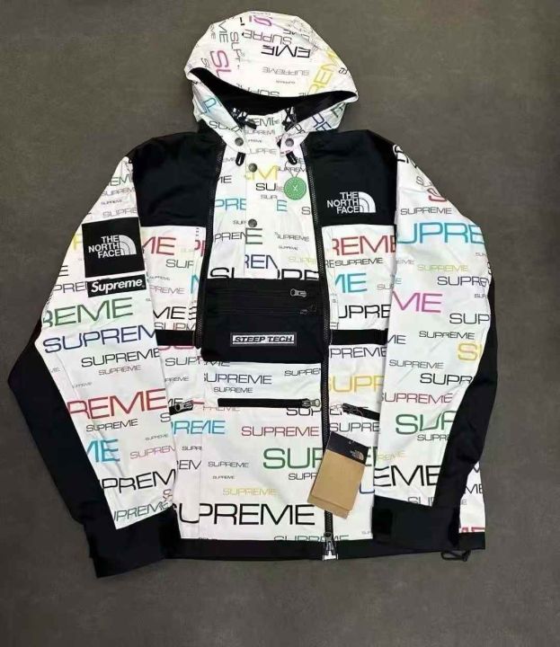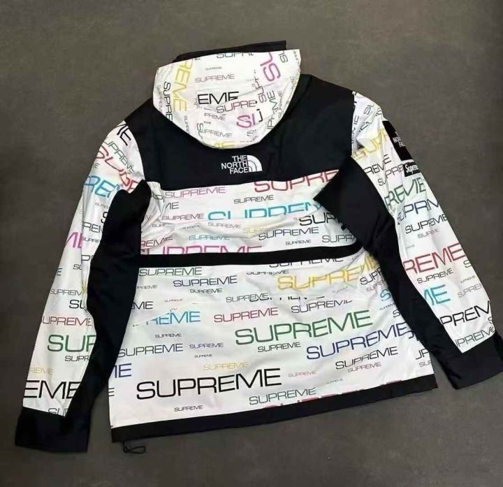 |- !Supreme Week 9 x FW21-TNF联名系列美式潮流彩色字母徽标Logo连帽防水防风机能工装外套 帽子能折叠 秋季 白色 黑色 300-400件处理!