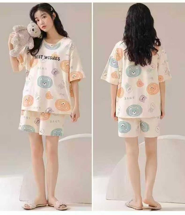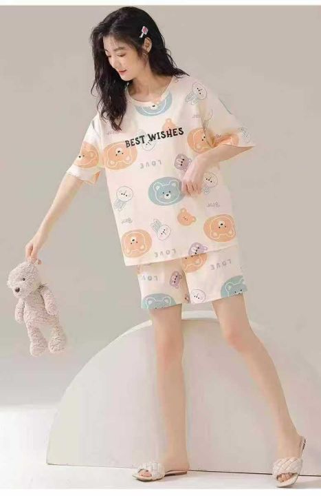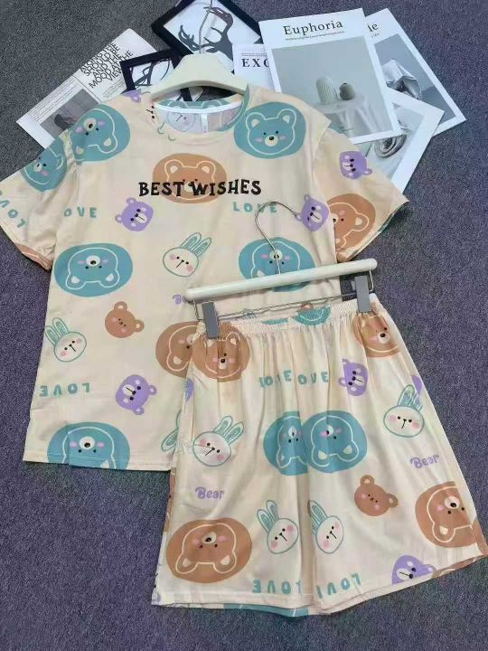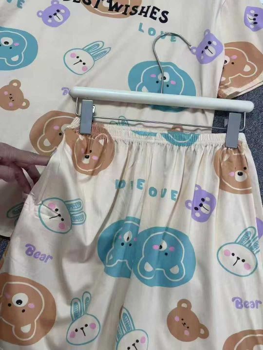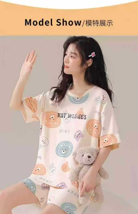 ☕️整款睡衣家居服套装1050套全清9.8 分货10.8元,码数M到XXL,单款单色,独立包装,卡通甜美睡衣女夏季短袖短裤套头套装女士薄款家居服