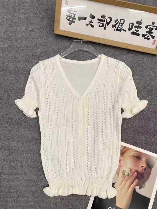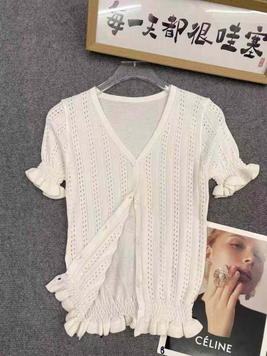 花边针织开衫50件4.9,面料柔软有弹力,花边镂空设计...