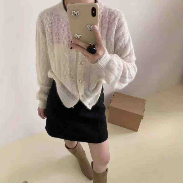 春秋新款马海毛麻花小金扣纽扣宽松针织毛衣开衫,独立包装,均码面料软糯舒...