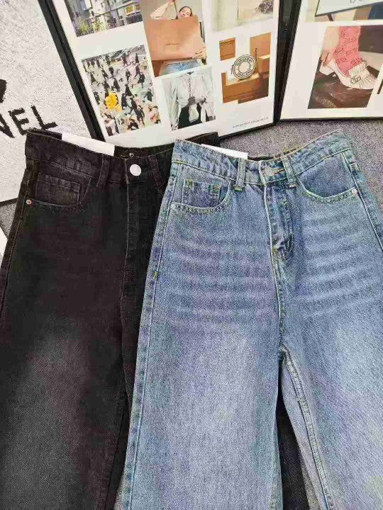 121条左唐高腰窄版阔腿牛仔裤女春秋宽松显瘦美式无弹力硬挺直筒长裤子,码数xs-s 黑色多蓝色50条,全清11.8