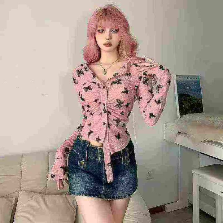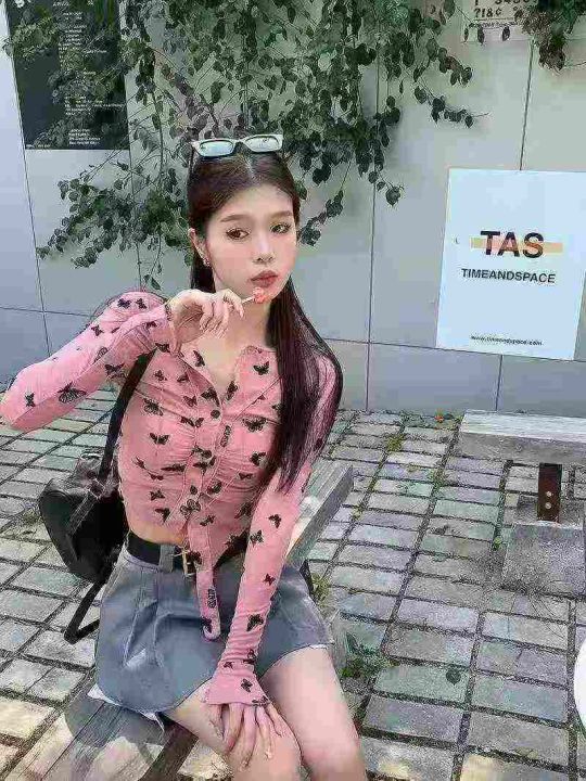 ⭐⭐270件蝴蝶印花纯欲性感甜辣小衫开衫,整款两色,...