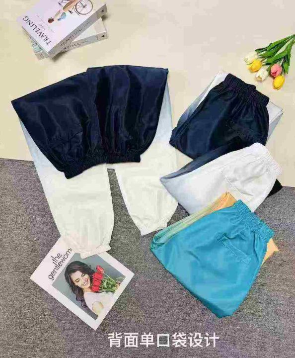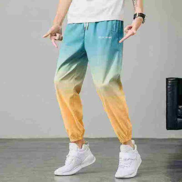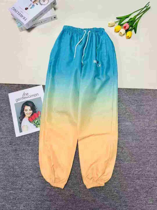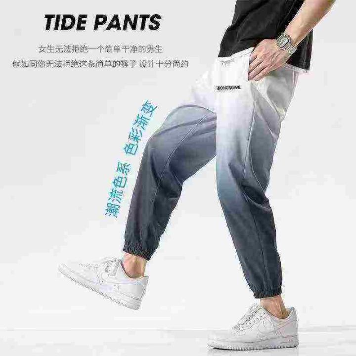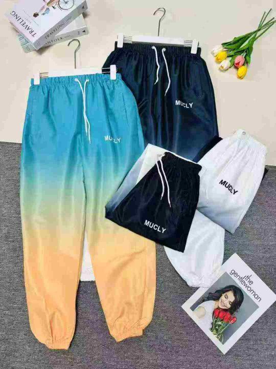2100件左右夏季渐变潮流字母印花运动宽松束脚九分裤,整款多色,品质好,码数S~3XL,独立拉链袋包装,全清4.9元。