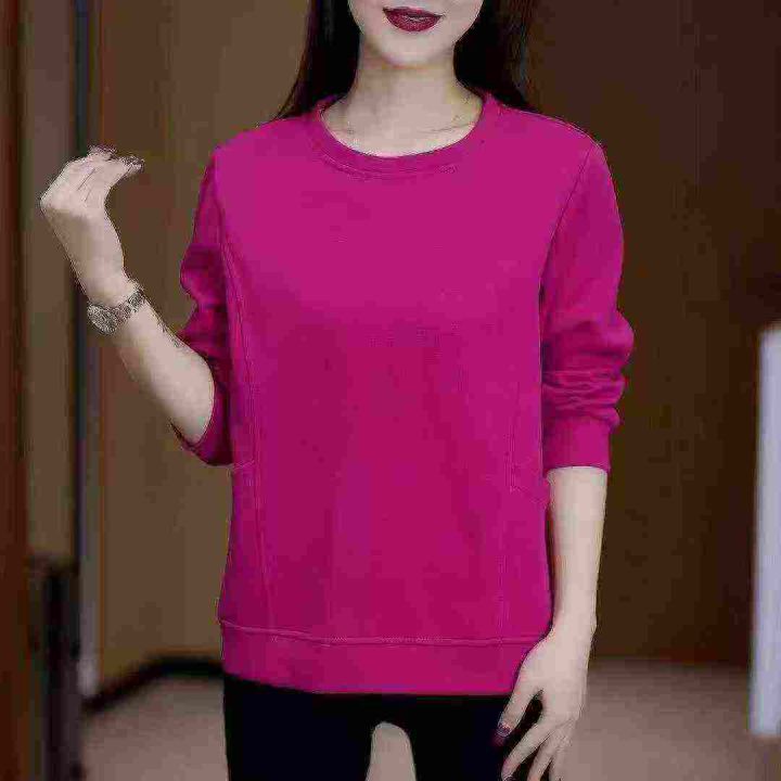 全清7.8 春秋加绒宽松圆领华棉卫衣,纯色百搭显瘦宽...