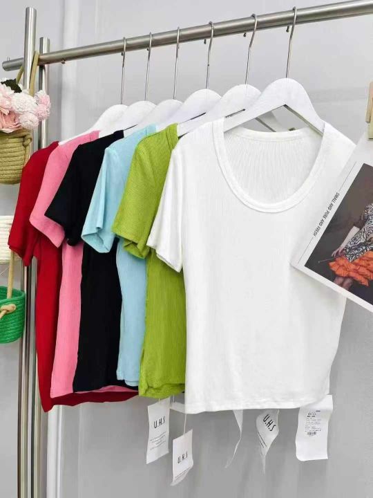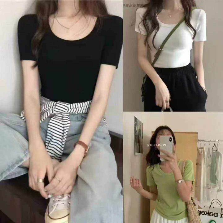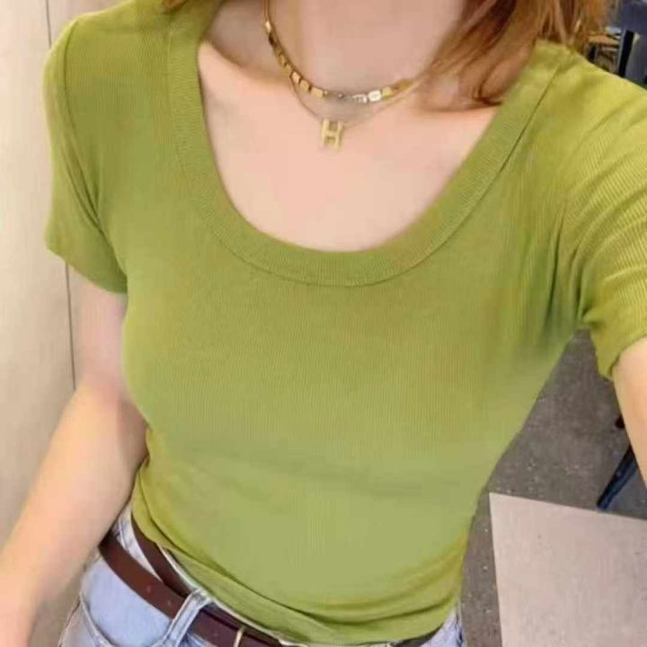 夏季新款软糯螺纹纯色打底衫时尚气质低领辣妹上衣,数...