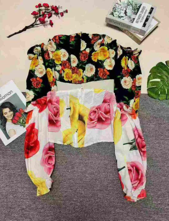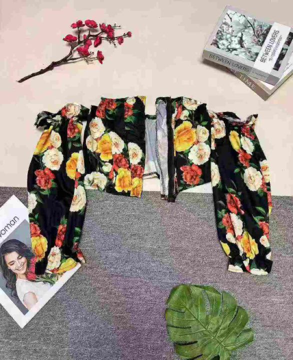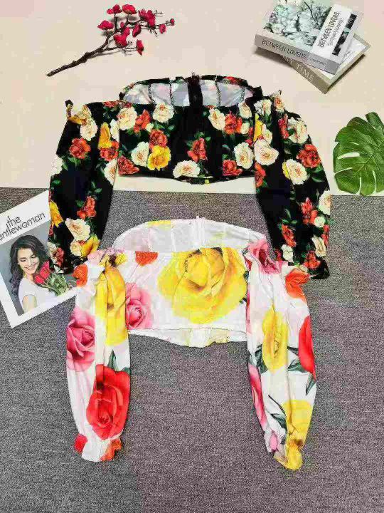 洋气花朵性感露肩一字领拉链短款开衫上衣,数量135件,码数S-2XL,整款两色,品质好,有独立包装。
