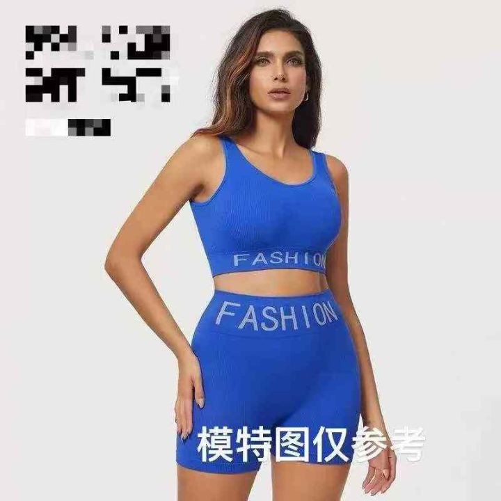性感字母印花运动欧美瑜伽背心短裤两件套,数量:170套左右,码数:S-3XL,整款多色,高弹力品质好,有独立包装。