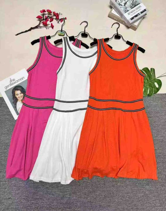 欧美女装时尚运动网球圆领无袖背心百褶短裙连衣裙 ,数量:113件,码数:M-2XL,整款三色,高弹力,品质好,有独立包装。