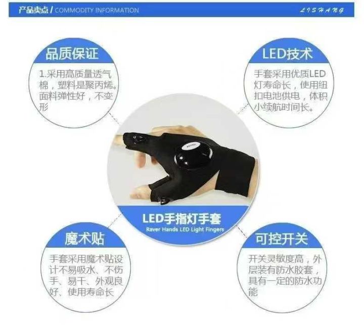 户外运动带灯手套