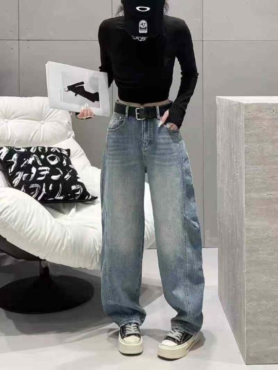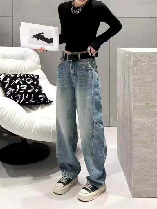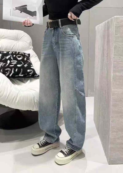 秋季新款洗水棉女装网红韩版高腰宽松哈伦牛仔老爹裤,...