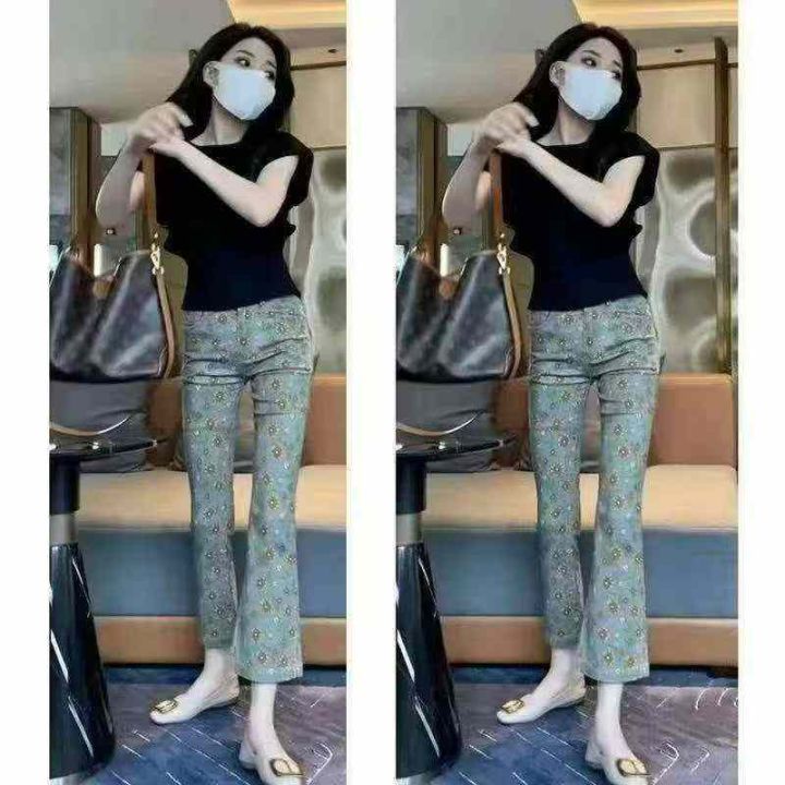 早秋季新品高弹力女装洗水棉毛边微喇叭牛仔裤,独立包装带腰卡,码数S-2XL...