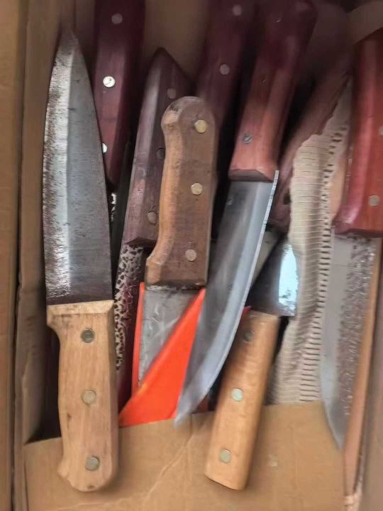 2000把刀,一块钱一把,有点锈,质量很好,碳钢的木柄...