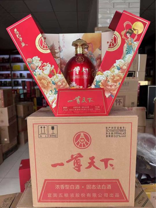 100多元一箱,五粮液一尊天下52度,一箱999毫升2瓶...