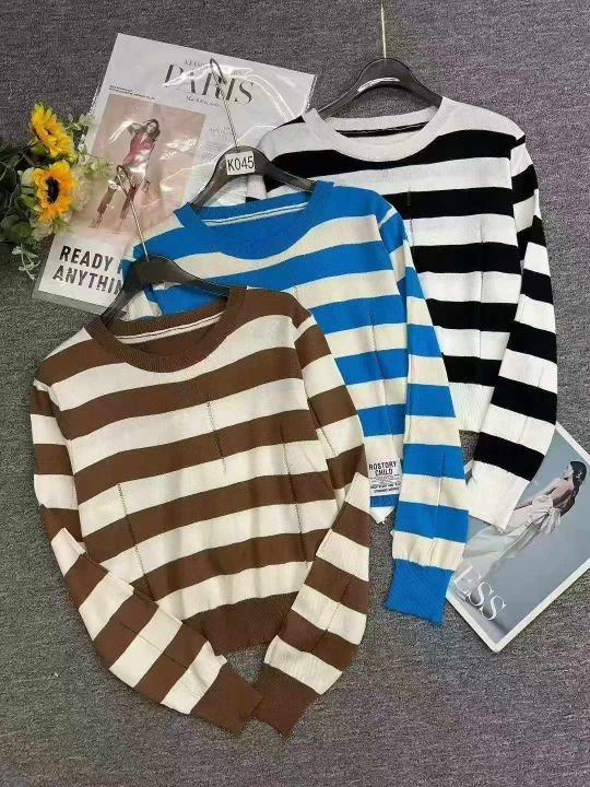 早秋新款设计款撞色条纹圆领长袖针织衫,独立包装,2款多色(一个有标一个没有),均码面料柔软舒适,黑色多一点,1300件,全清5.9元超低价秒杀!分货加一!