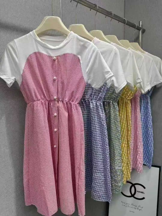 清1050条,学院风假两件拼接格子连衣裙女夏2025新款宽松休闲显瘦少女生裙子,茶歇法式格子撞色拼接减龄收腰气质连衣裙,均码,可清可分。