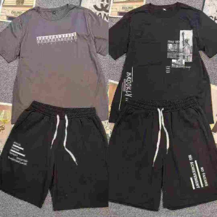 潮流设计感百搭休闲短袖套装,3800套左右 (短袖短裤套装为主)图片款图片风格配货,码数S-2XL,大版型可穿100-180斤,独立包装货品干净无瑕疵,分货+1