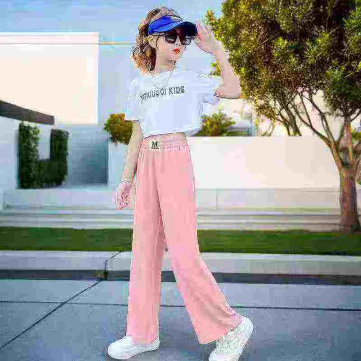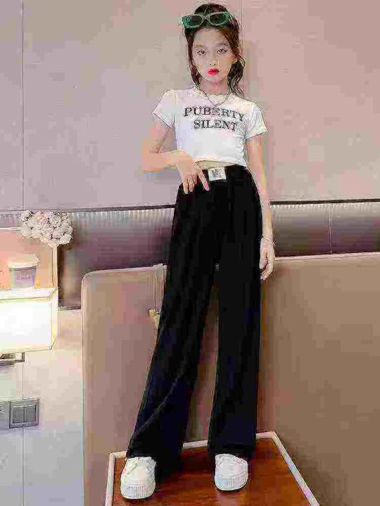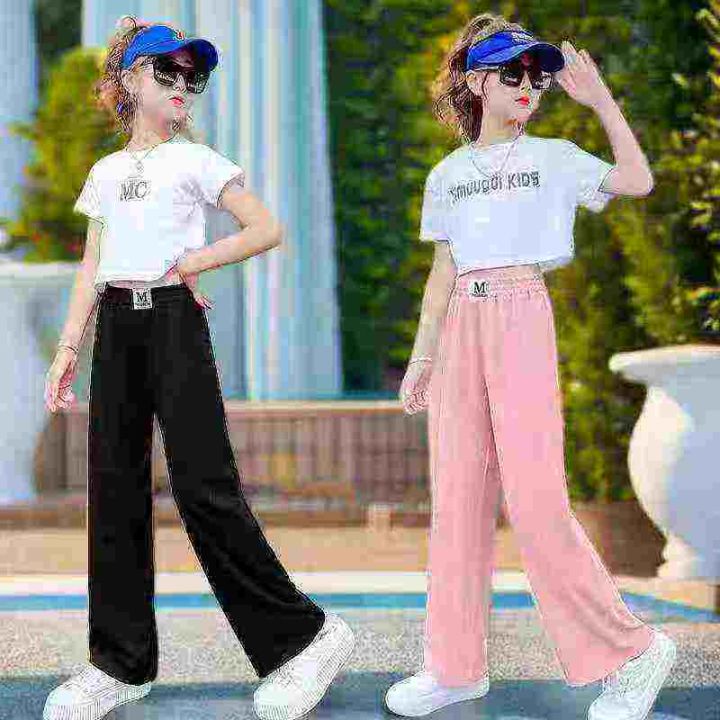 女中大童松紧腰有口袋垂感阔腿冰丝裤,750件,2-7码,...
