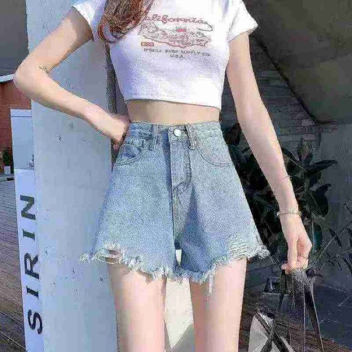 ☕️高腰破洞牛仔短裤女夏宽松显瘦新款磨破a字毛边阔腿热裤子 180条全清8.8...