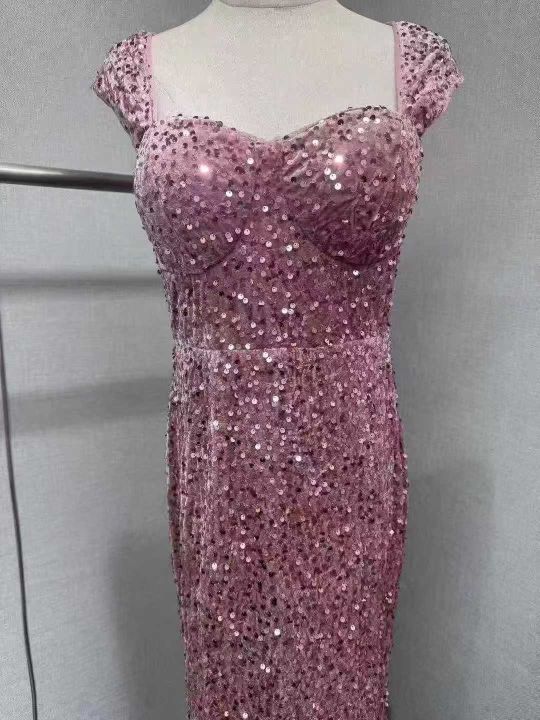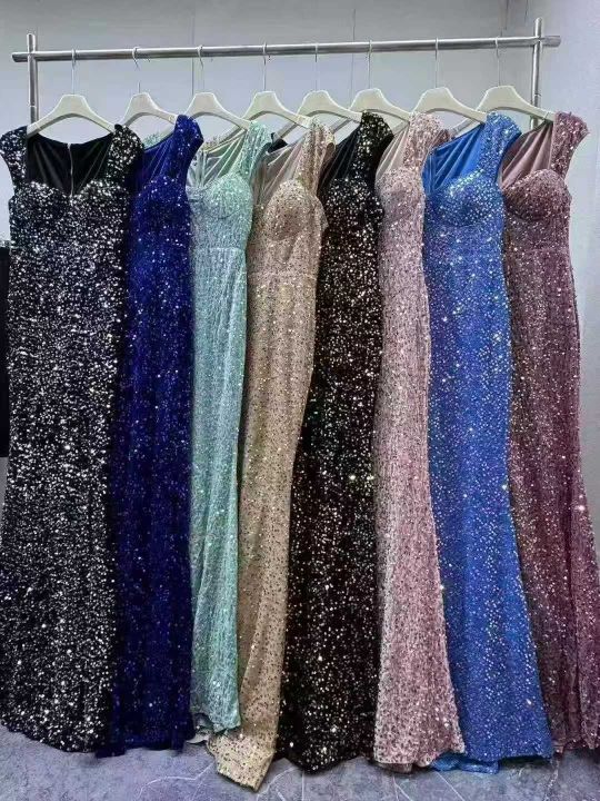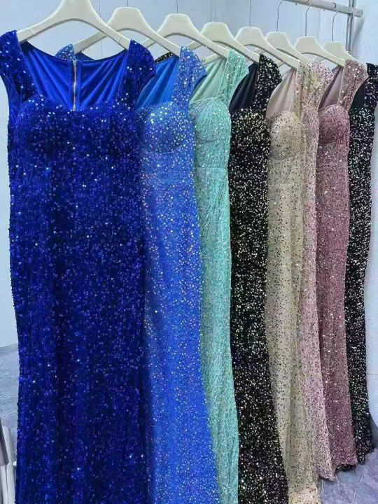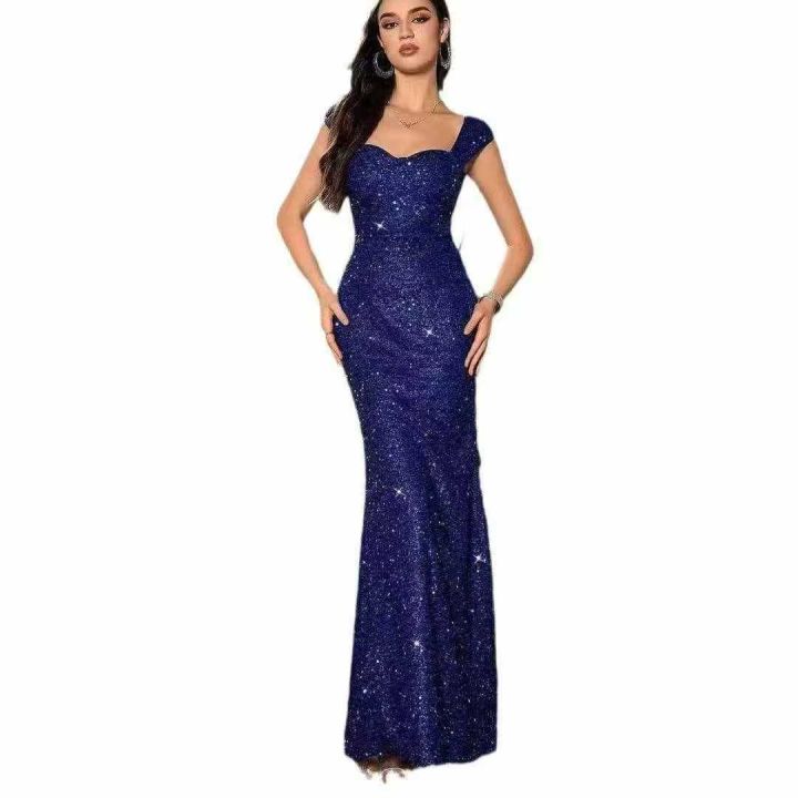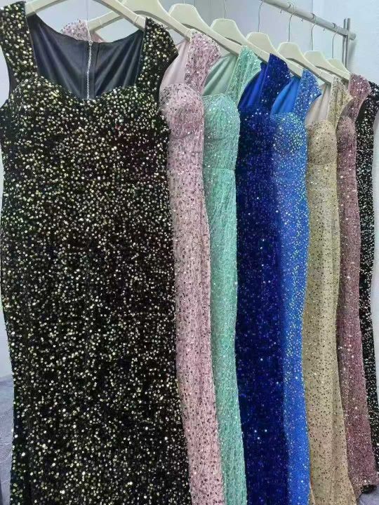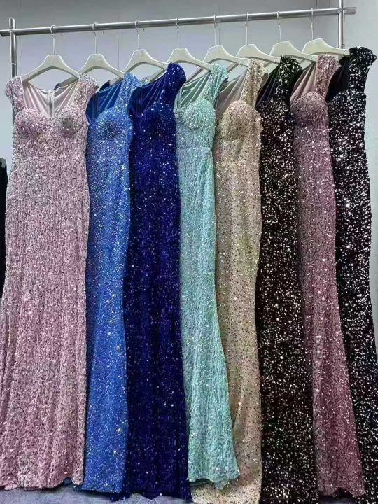 清450条,欧美中东外贸跨境INS纯色V领亮片吊带高腰晚礼服鱼尾裙长裙连衣裙,年会晚礼服女高级感高端轻奢小众简单大方主持人宴会鱼尾裙,码数s-2xl。