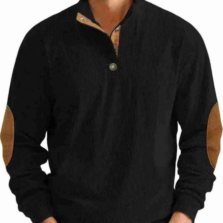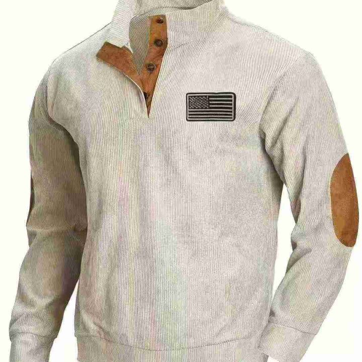 男士欧美户外春秋款美式休闲灯芯绒卫衣潮流拼色立领款...