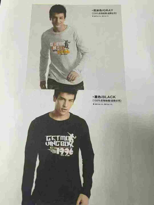 品牌男士秋季纯棉宽松圆领印花长袖t恤800件,整款两色...