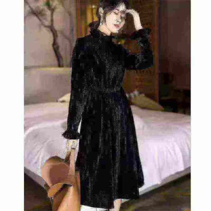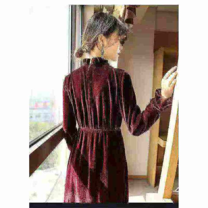 ️全清7.9 高级感法式气质金丝绒连衣裙,纯色百搭中...