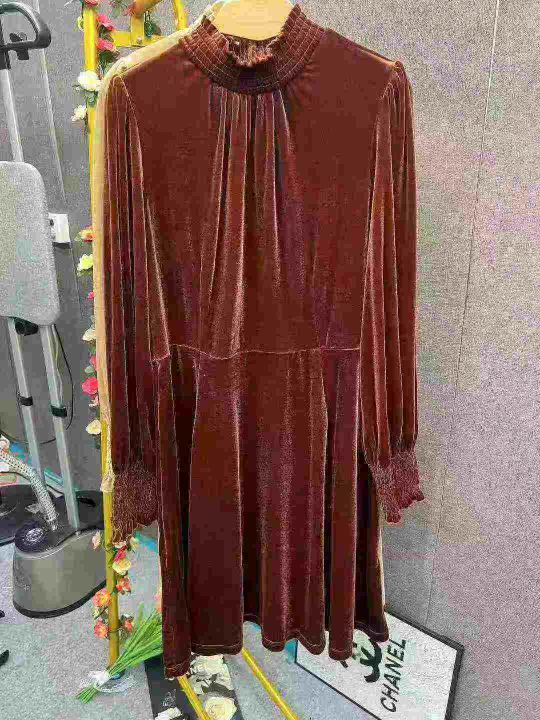 ️全清7.9 高级感法式气质金丝绒连衣裙,纯色百搭中长款连衣裙,全部独立包装,棕色和蓝色为主,一共38件
