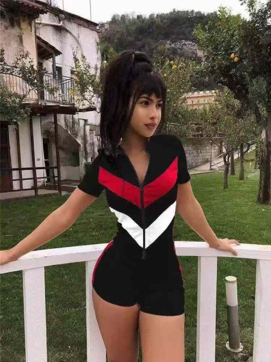 6.8清款号:DN8087欧美时尚洋气拼色拼接运动短裤连体...