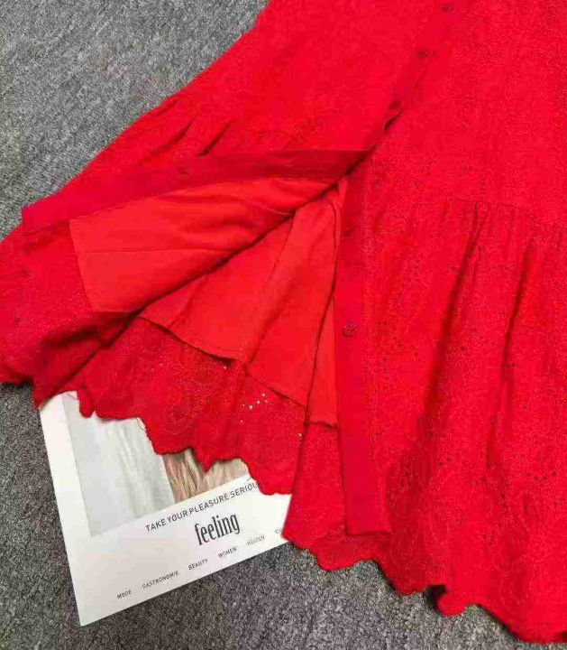 ⭐⭐200件港味复古chic小香风法式初恋红色泡泡袖连衣...