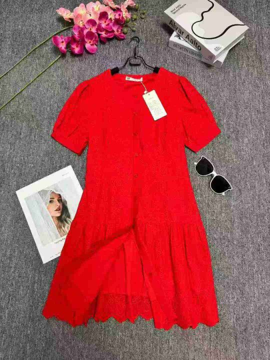⭐⭐200件港味复古chic小香风法式初恋红色泡泡袖连衣裙,S到XL码,品质好,独立包装带吊牌,全清8.5元!