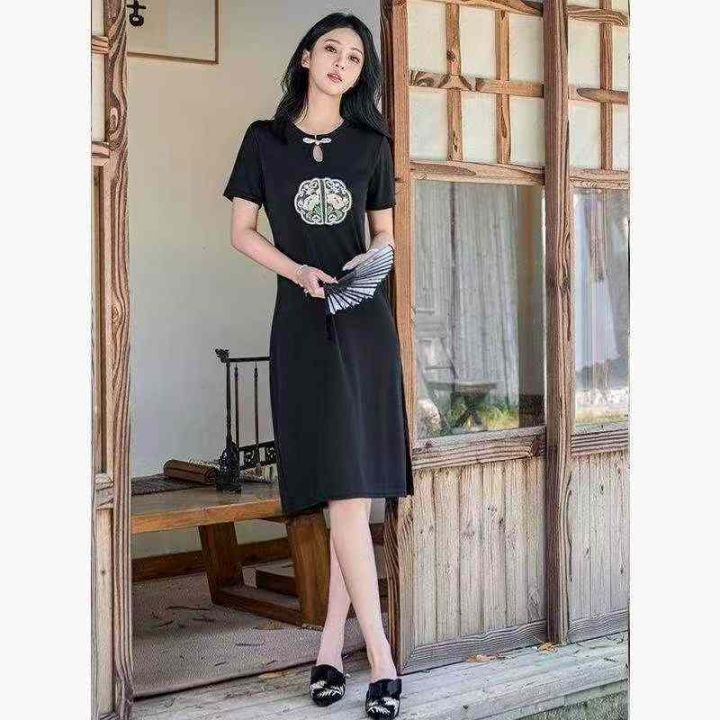 时尚休闲连衣裙女中长款2025年春夏显瘦百搭国风盘扣连...