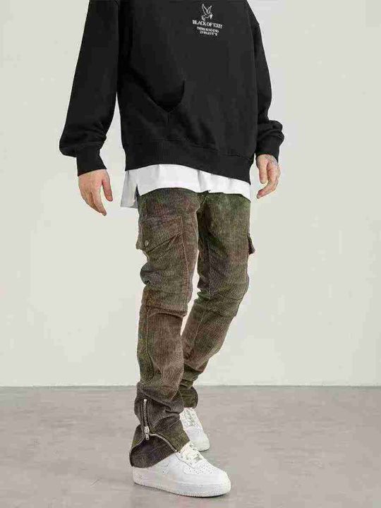 342条\'街复古做旧灯芯绒拉链修身工装裤国潮机能休闲裤,独立包装,码数29-32,质量不错。全清9.8元分货+1