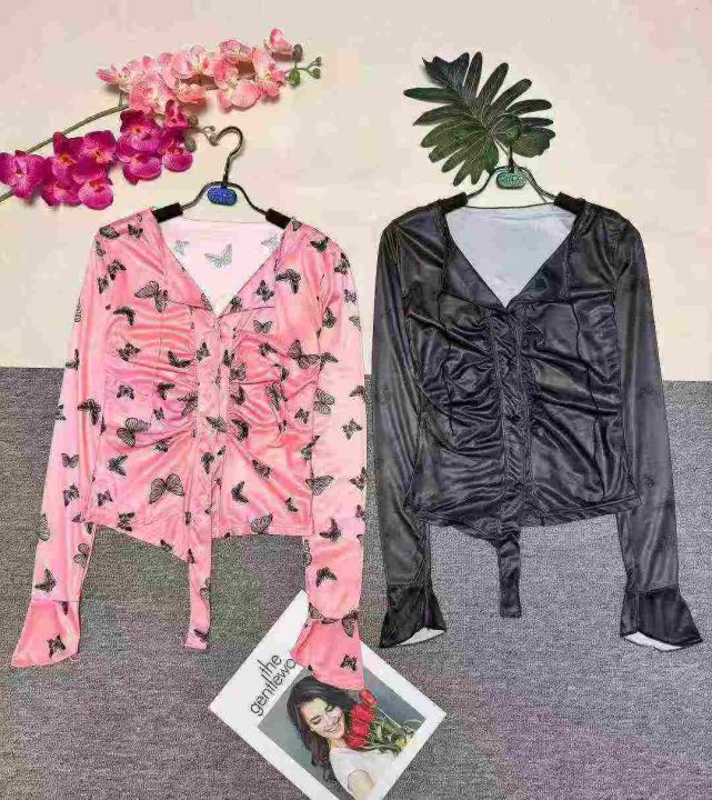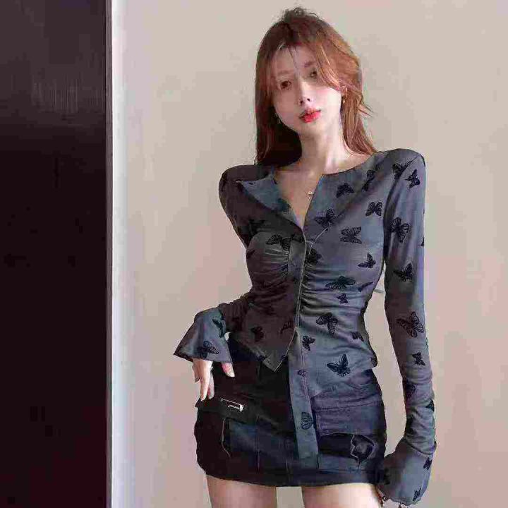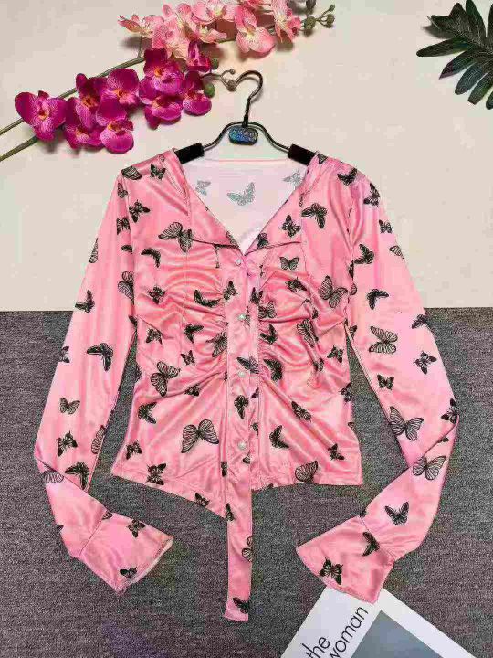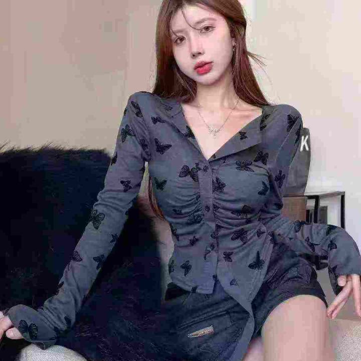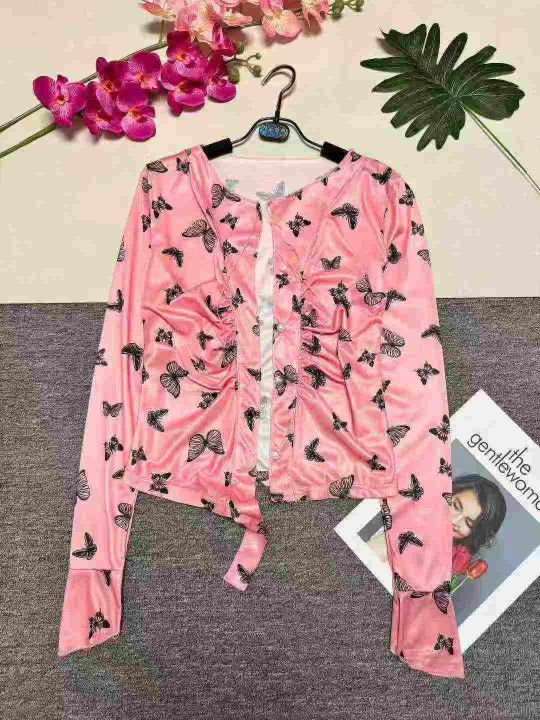 ⭐⭐270件蝴蝶印花纯欲性感甜辣小衫开衫,整款两色,...