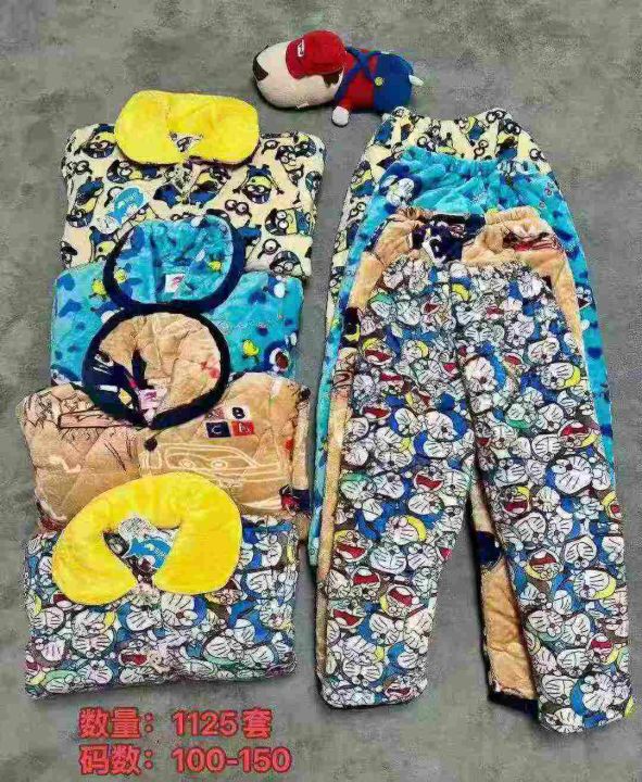 ⭐⭐900件(可爱鱼)品牌中大童珊瑚绒加厚加绒卡通三层夹棉家居服睡衣两件套,睡袍50件左右(可不要),100到160码,120到150多,独立包装,全清13.8元!分货加1元!