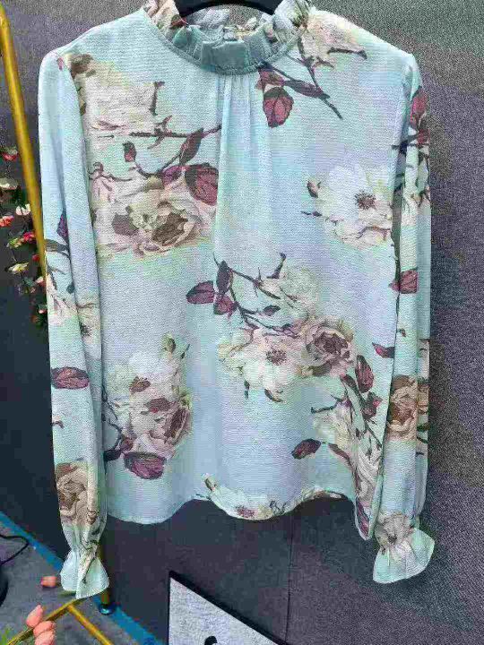️全清4.9 春秋新款女装长袖上衣,修身套头雪纺衫,...