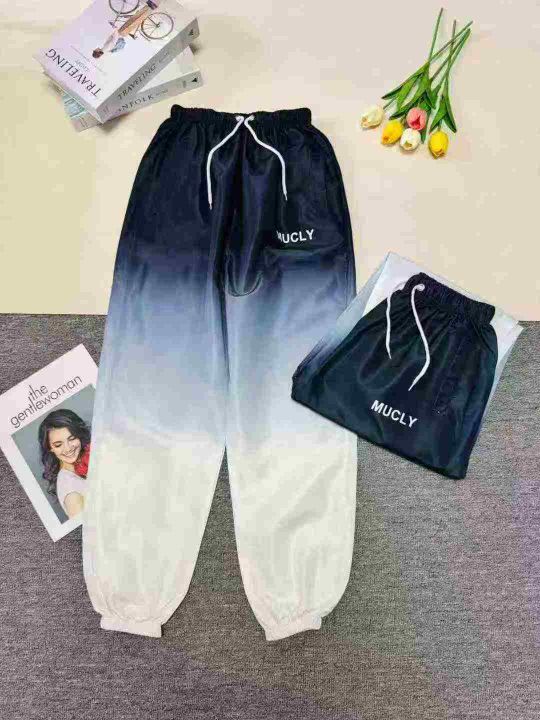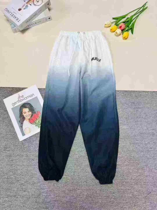 2100件左右夏季渐变潮流字母印花运动宽松束脚九分裤,整款多色,品质好,码数S~3XL,独立拉链袋包装,全清4.9元。