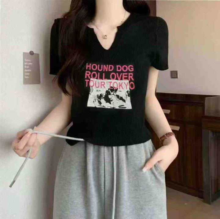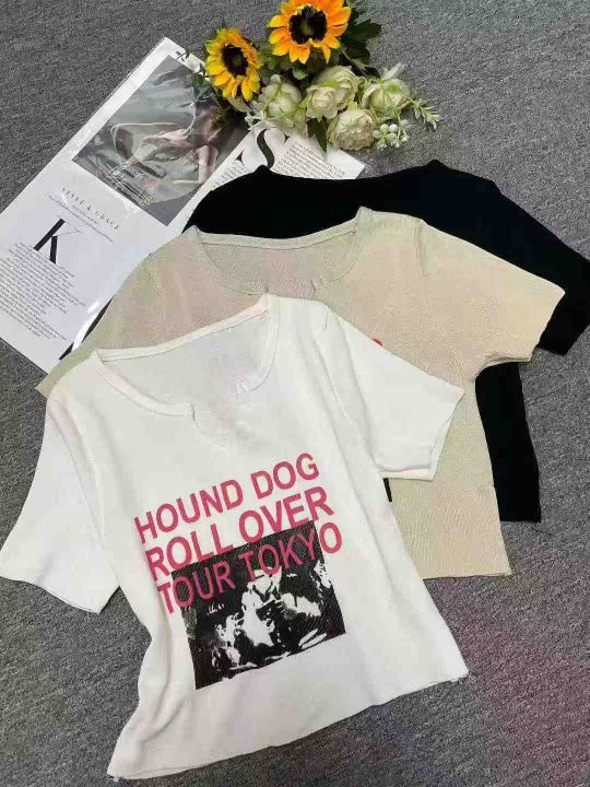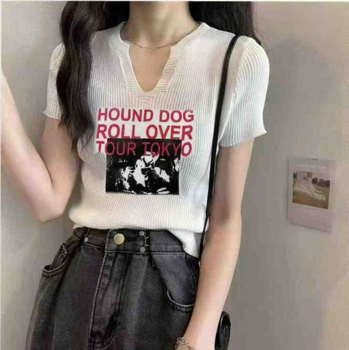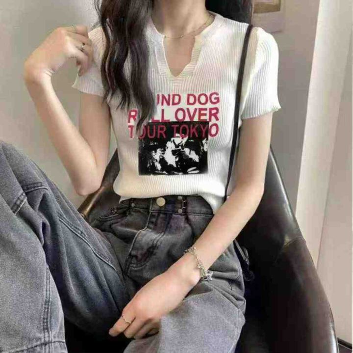 夏季新款冰丝印花设计感字母韩版显瘦针织短袖T恤,独...