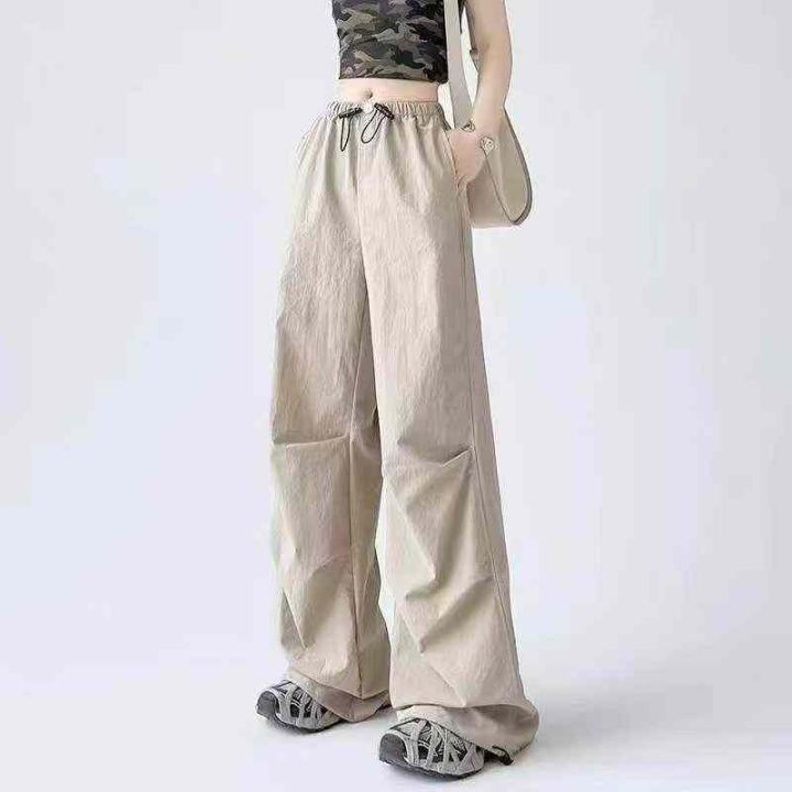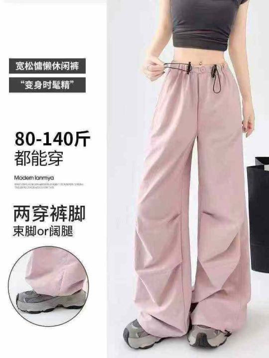 5.8清985条女冰丝裤子女夏季小整款高腰垂感宽松显高显瘦休闲直筒拖地阔腿裤...