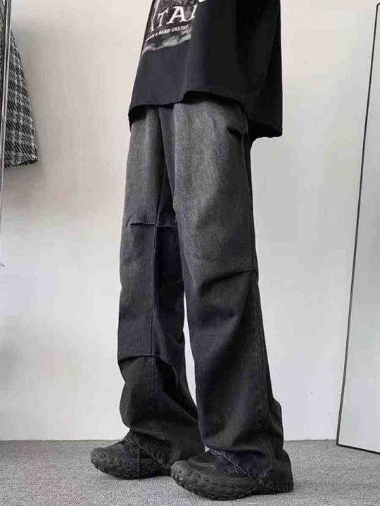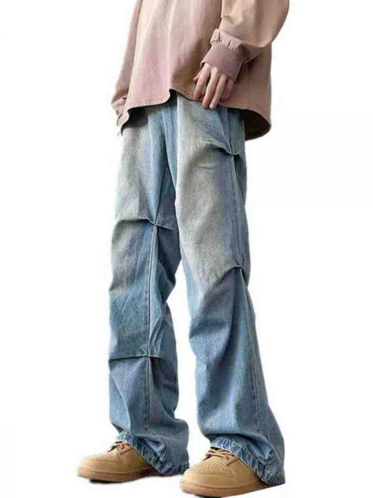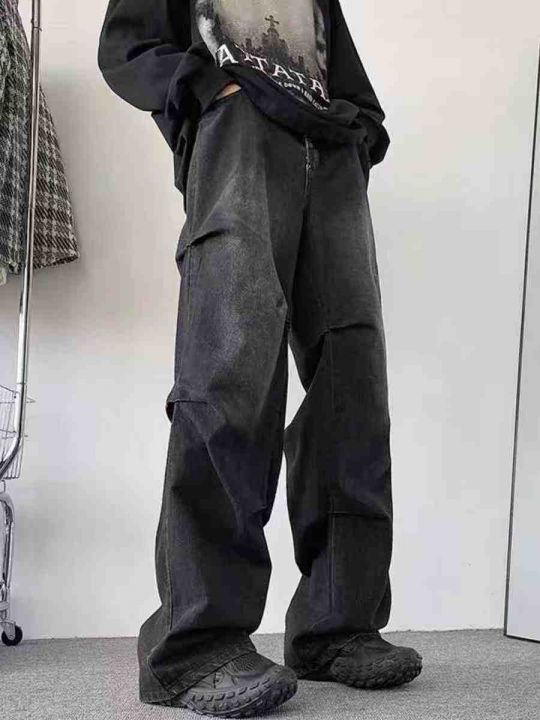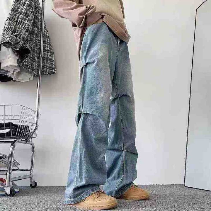 美式潮牌复古牛仔裤褶皱工装牛仔裤,独立包装带吊牌防...