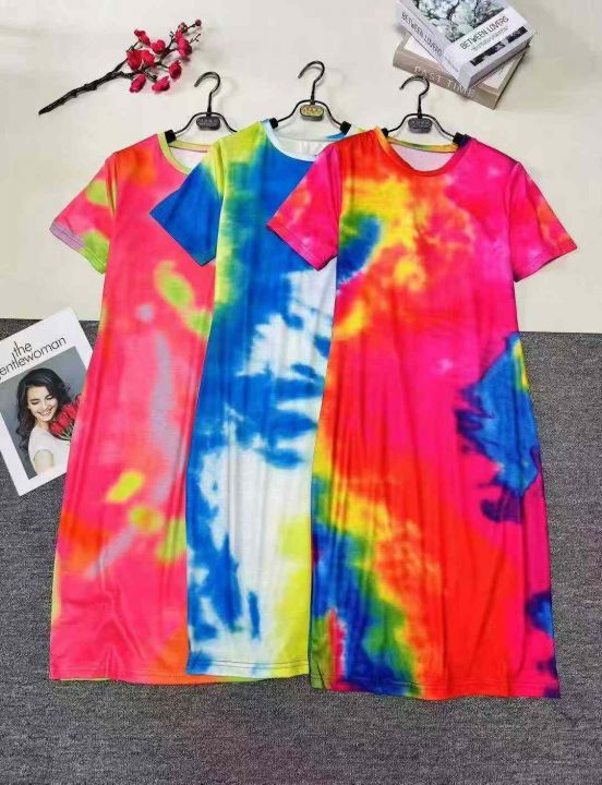 欧美时尚辣妹扎染紧身短袖连衣裙,数量:400条左右,码数:S-3XL,整款多色,高弹力,品质好,有独立包装。