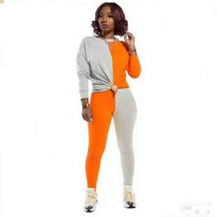 欧美爆款时尚拼接纯色运动短袖长裤套装,数量:200套左右,码数:S-2XL,整款三色,品质好,有独立包装。