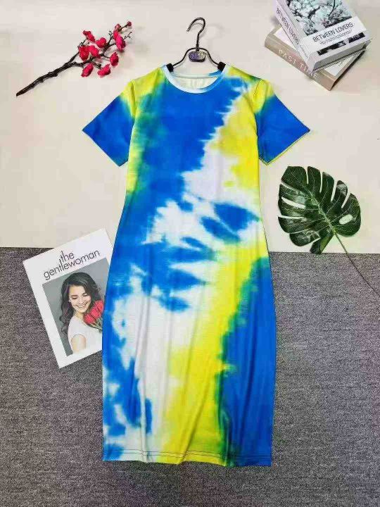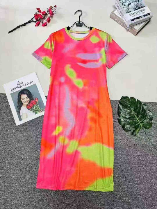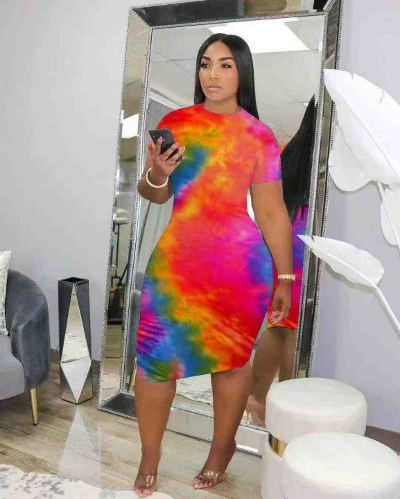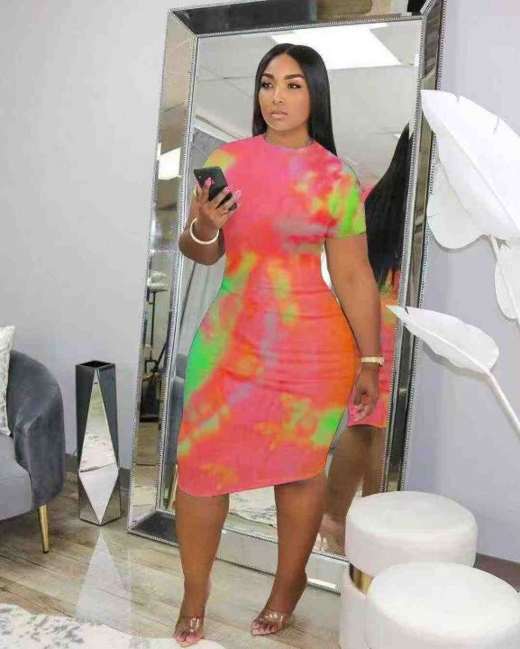 欧美时尚辣妹扎染紧身短袖连衣裙,数量:400条左右,码数:S-3XL,整款多色,高弹力,品质好,有独立包装。