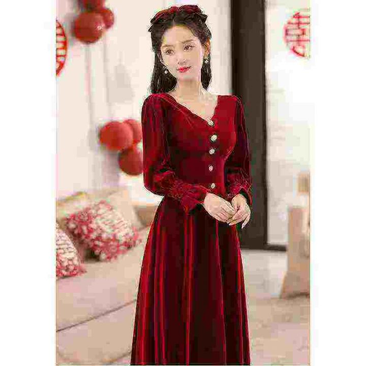 全清8.8法式复古赫本丝绒连衣裙女秋冬显瘦气质女神范...